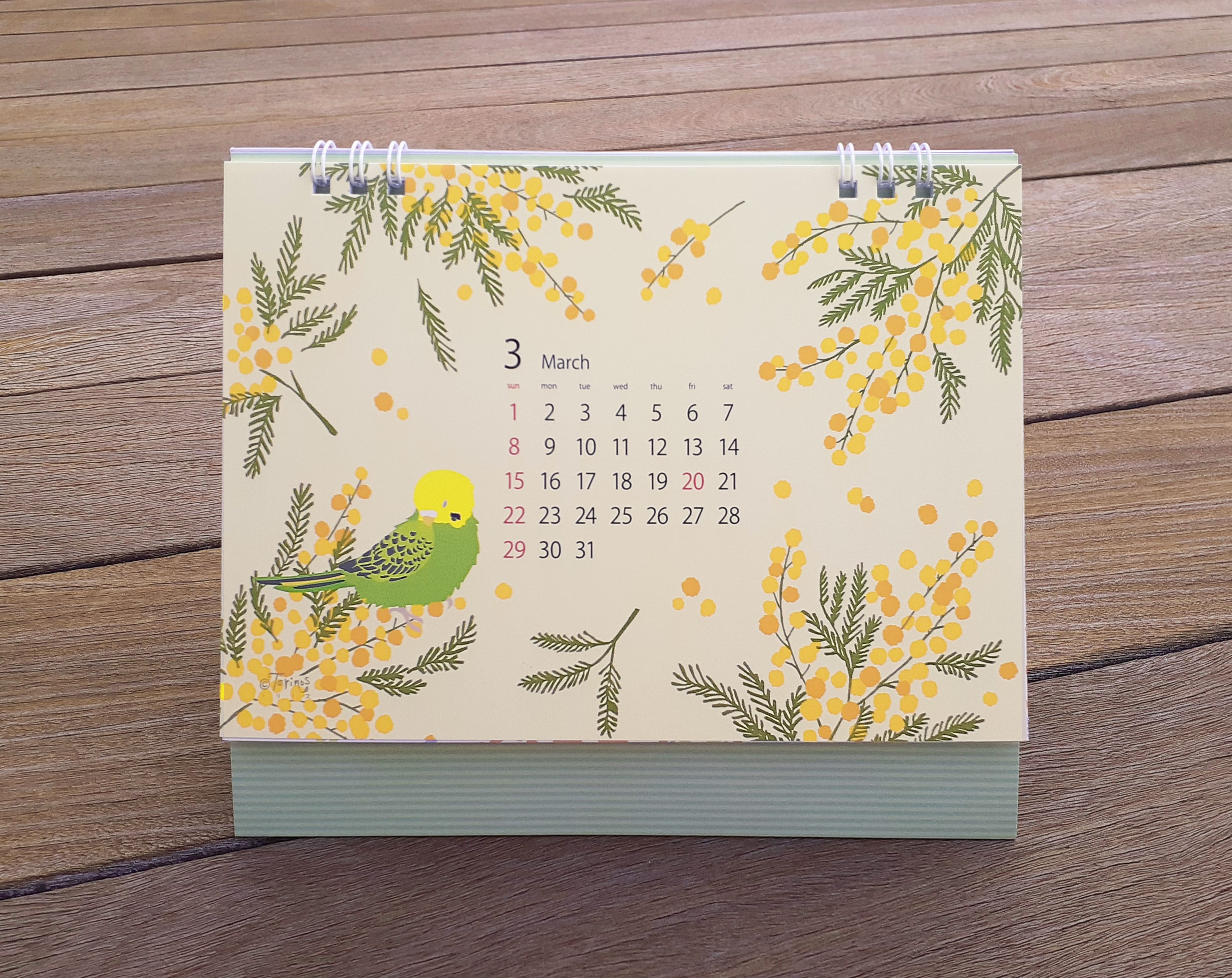 2026 Torinos卓上カレンダーです。 文鳥、インコ、シロエナガ、キンカチョウ、ぺンギン、メジロと 季節の植物を描きました。 月毎、日曜始め 約150×180mm(台紙込みサイズ)