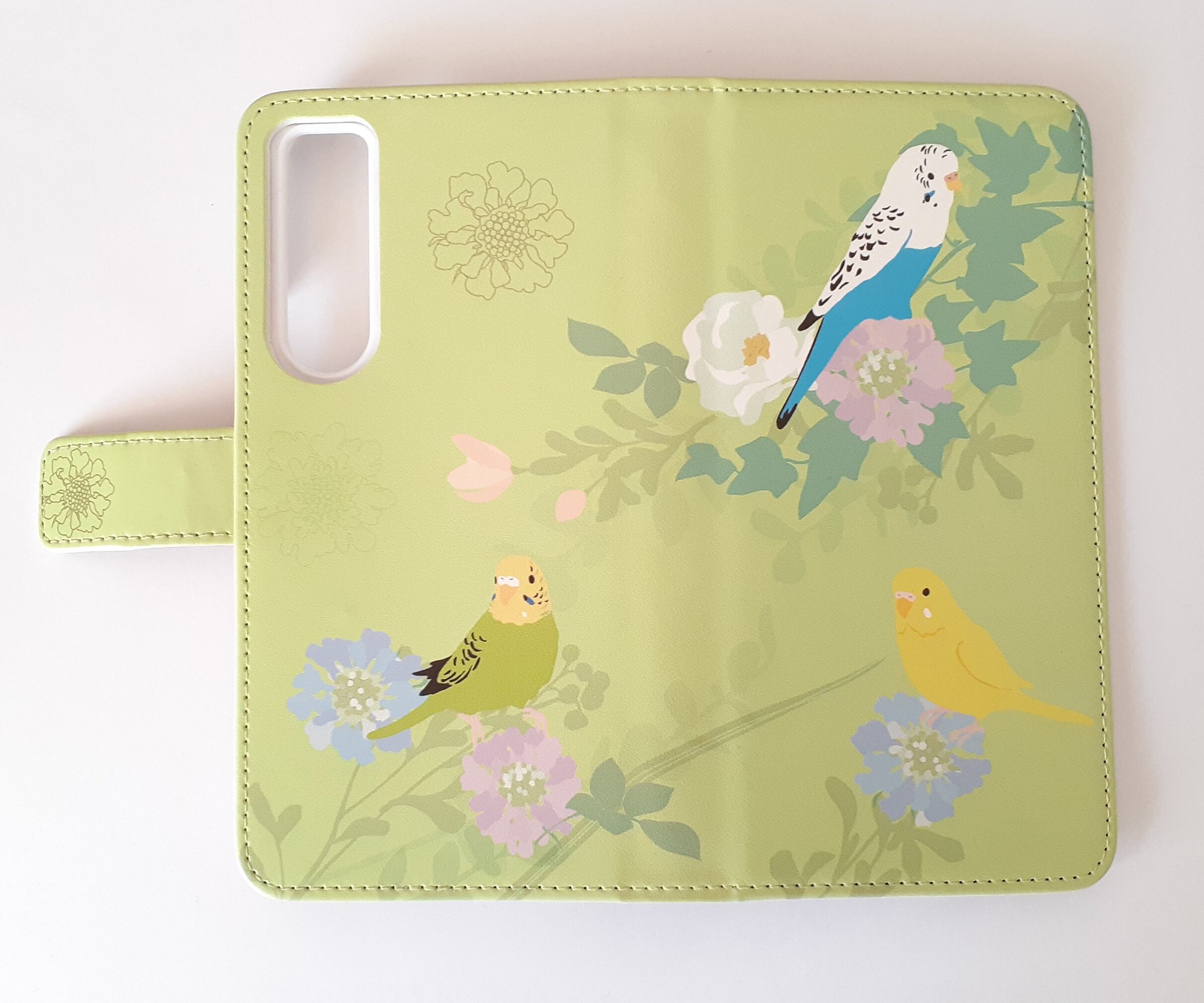 ほぼ全機種対応 手帳型 スマホケース スマホカバー(対応専用ケース、カメラホール付) インコ  鳥