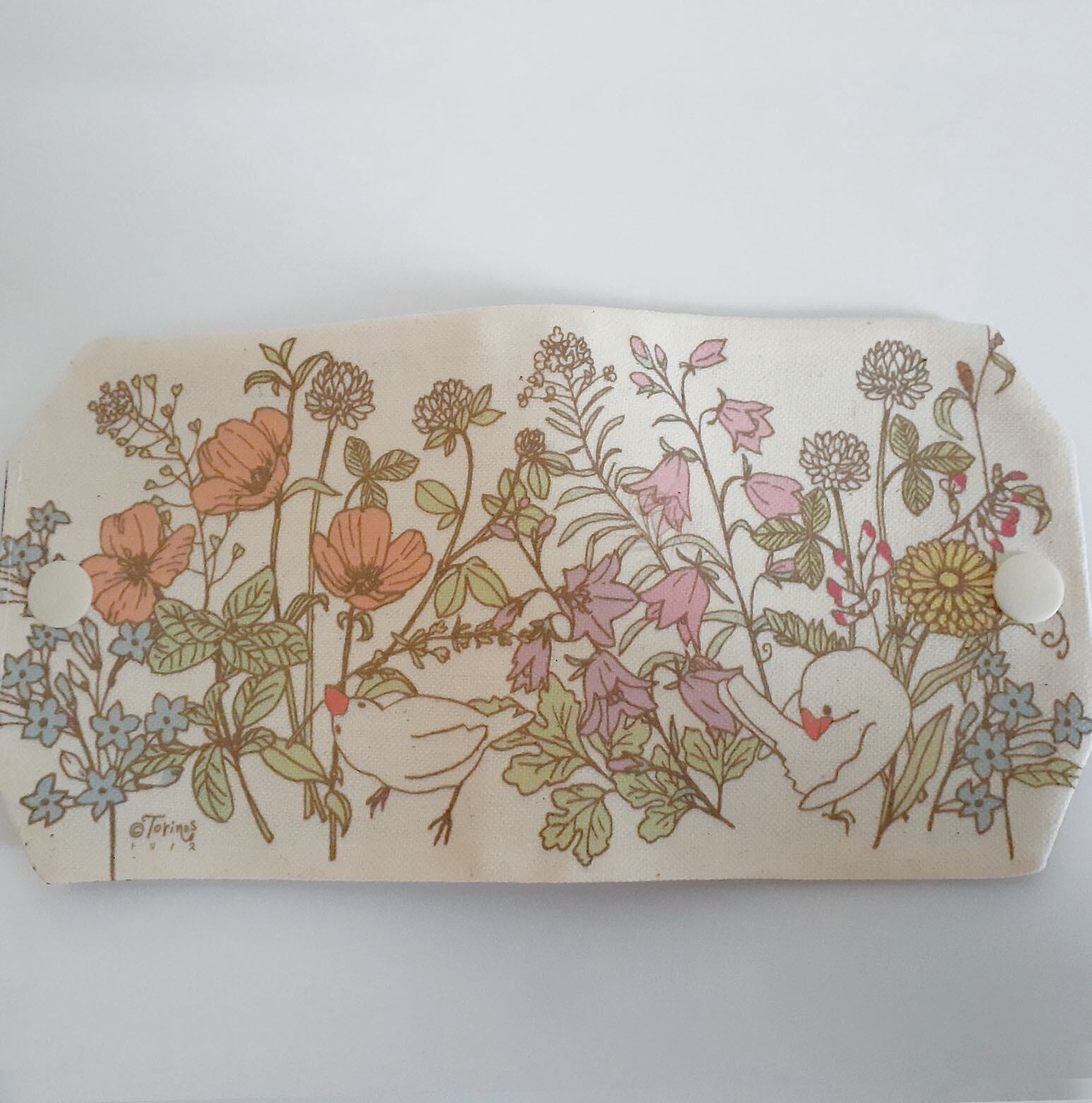 ハンドメイド サイズ:9.5×21.5cm 便利なスナップ付き 他に出店しているものより少し小さいです。 食事の時等、マスクをバックにそのままいれることなくマスクを保管するケースです。 外側:ハンプにラミネートの様な加工がしてあります。 中側:防水、撥水加工のナイロン生地です。 上記の生地ですので、アルコールスプレーや中性洗剤を染み込ませたタオル等で