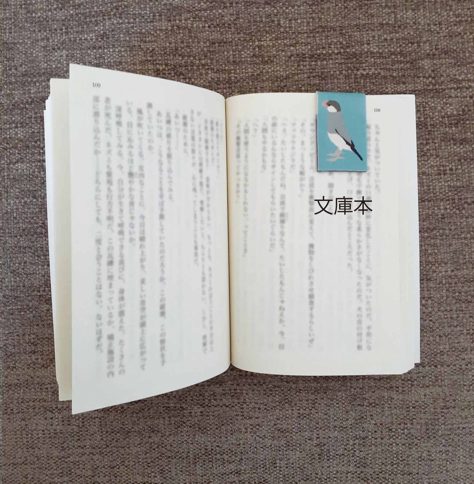 インコ しおり ブックマーカー 画像6と7はイメージです。デザインは画像1です。 インコの至福の時、毛繕いシーンイラストです。 2つ折り状態で約40×25cm 2点で1セットです。 表面は10号ハンプ生地で、両面ラミネート加工し、強度とほつれ防止をしています。 中側のマグネットは、紙を汚さない様、ラミネートやコーティングをしています。 マグネットなので本を痛めません。10Pは余裕ではさめます。