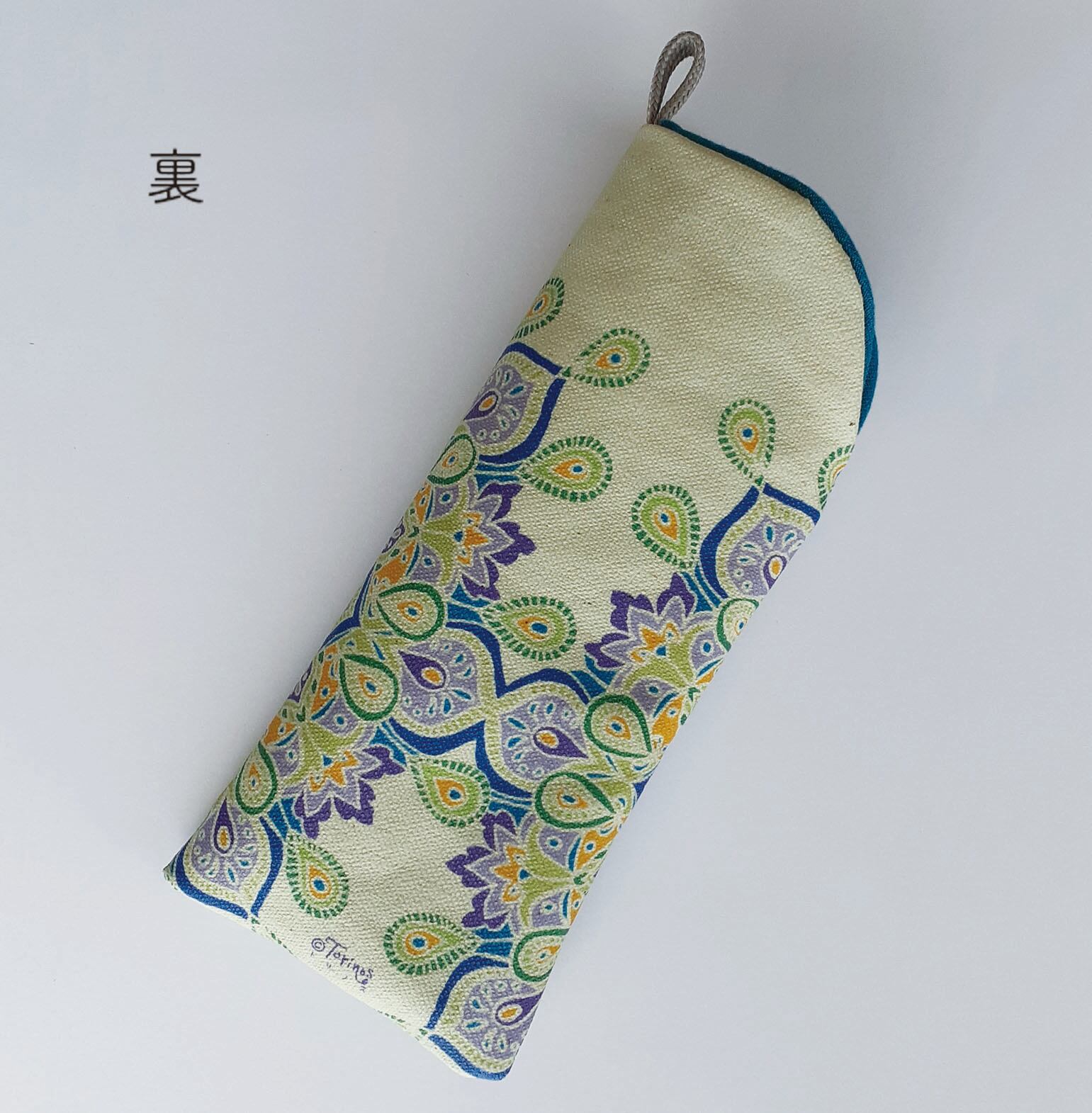 薄型ふんわり スリムメガネケース です。 孔雀と曼荼羅調の柄を組み合わせて描いてみました。 表:頒布生地にラミネートの様な加工がしてあります。 中:綿生地:ふわふわにする為キルト芯を入れています。 かさばらず、手軽に使えるメガネケースです。 *ラッピング(300円)には台紙、リボン、ポストカード1枚、PP袋入り 画像6参考