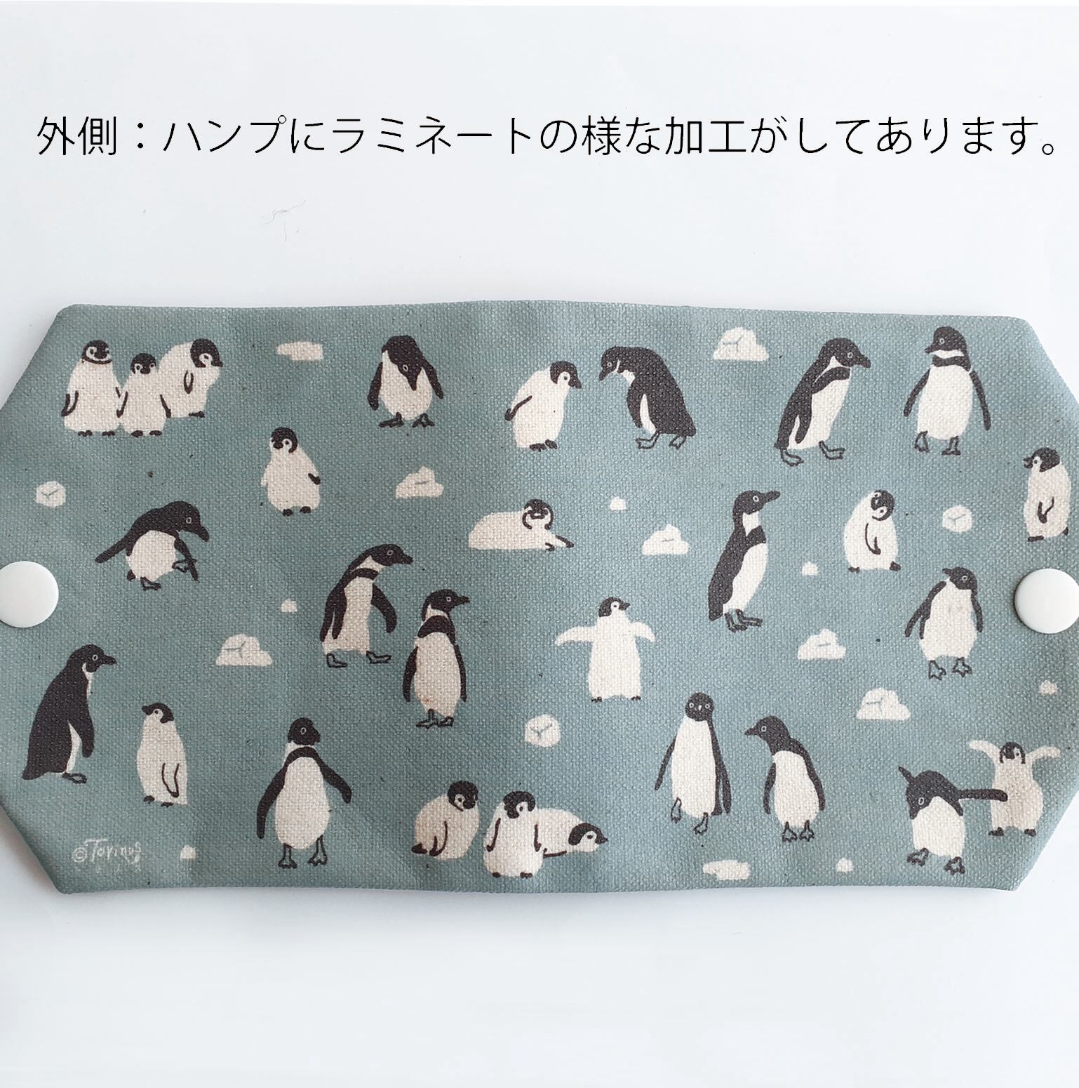 ハンドメイド サイズ:11.5×22.5cm 便利なスナップ付き 食事の時等、マスクをバックにそのままいれることなくマスクを保管するケースです。 外側:ハンプにラミネートの様な加工がしてあります。 中側:防水、撥水加工のナイロン生地です。 上記の生地ですので、アルコールスプレーや中性洗剤を染み込ませたタオル等で