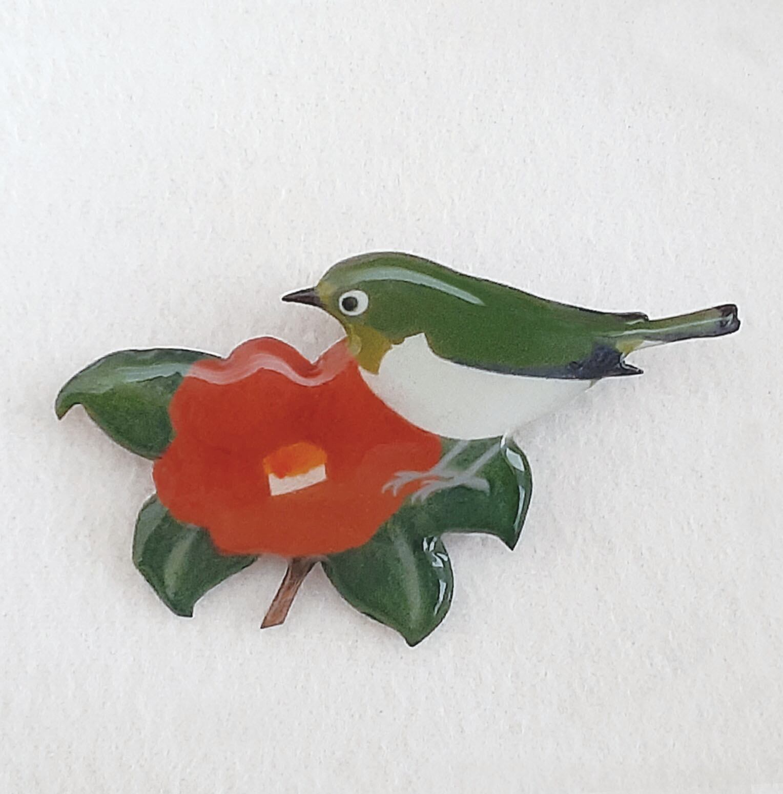 椿とメジロのブローチです。